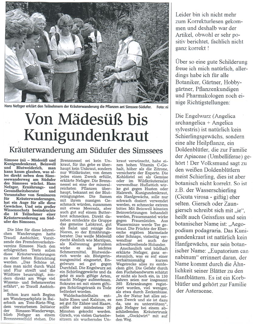 Hier einige Pressestimmen (nach 10 – 17 J. Kräuterführungen):